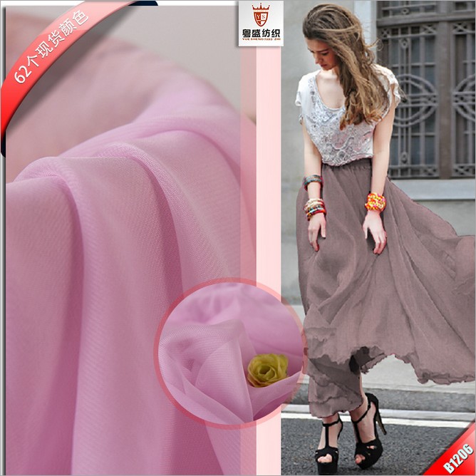 供應(yīng)75D韓國(guó)麻面料 加捻亂麻雪紡 素色女裝雪紡裙子服飾面料